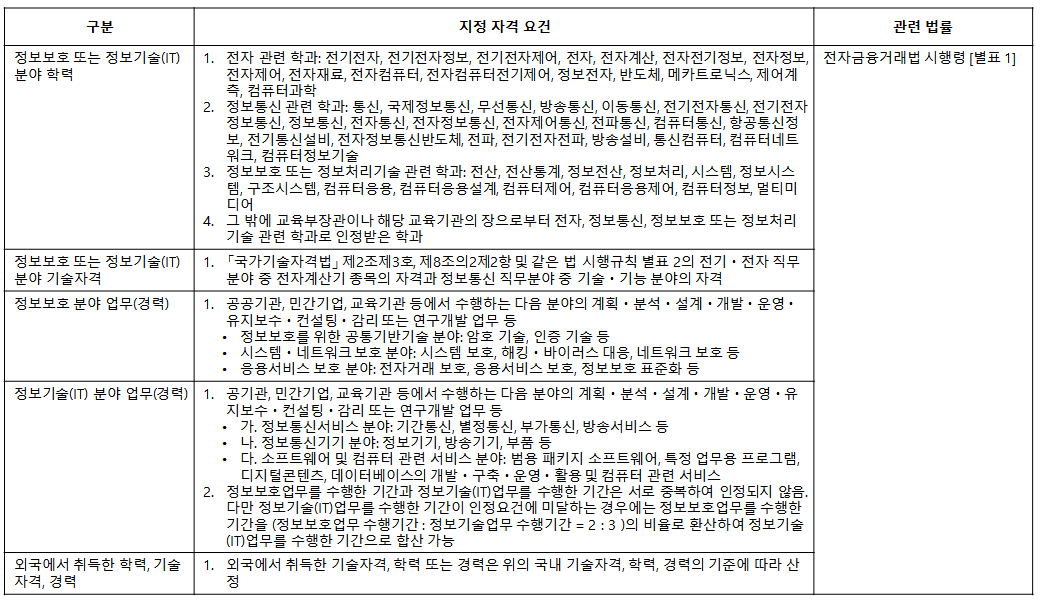 3. 정보보호 또는 정보기술 분야 학력, 기술자격, 경력 등