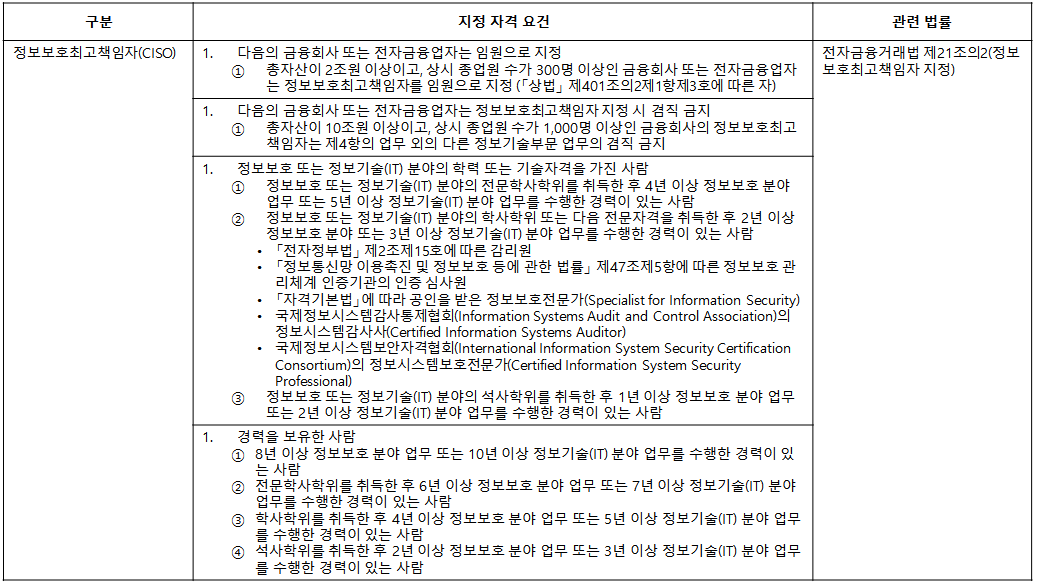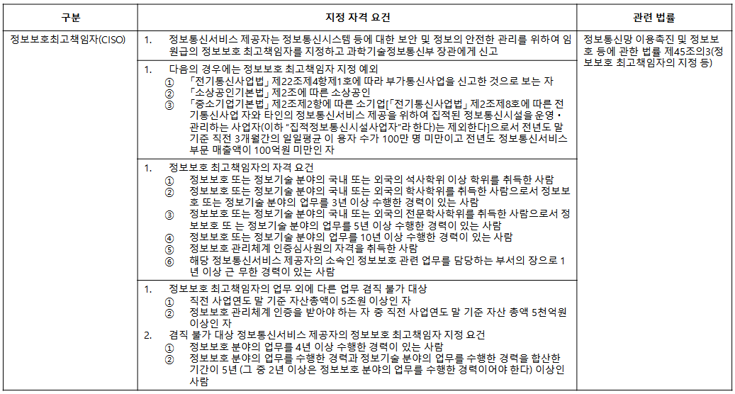 | (ISMS-P) 정보보호 최고책임자 지정신고 대상 및 제외대상 (0) | 2021.05.02 |