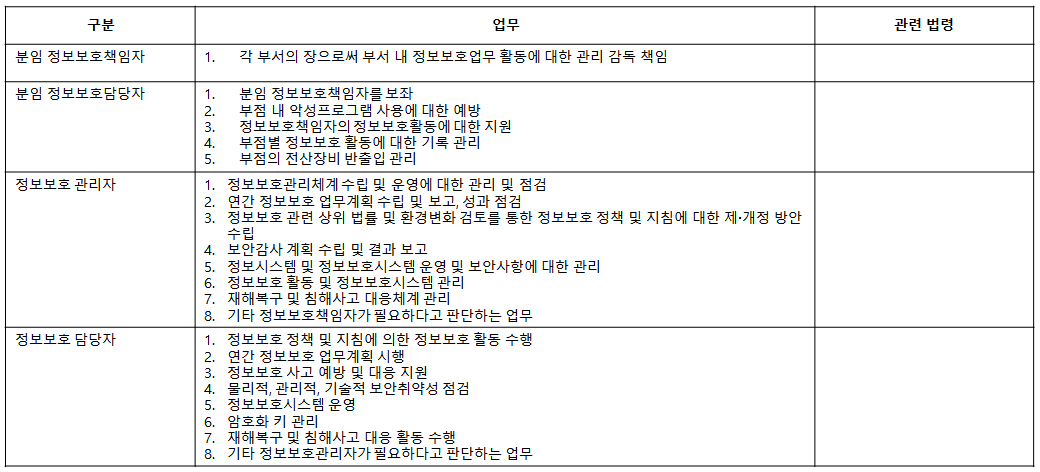 -조직의 정보보호 및 개인정보보호와 관련된 활동을 체계적으로 수행하기 위한 담당 부서