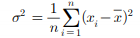 -x1~xn이 모집단 전체의 자료일 때 모집단 전체의 분산을 모분산 |