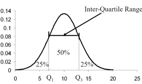 -데이터 값들의 50%에 포함되는 산포도 -Q3- Q1 |