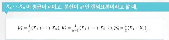 -추정량이 다르면 표본이 같다고 하더라도 다른 추정값이 나오므로 어느 추정량을 사용할 것인지 선택 필요