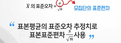 -표본평균의 표준오차는 모집단의 표준편차를 이용해 구할 수 있으나 이 값은 알 수 없는 경우가 많아 표본평균의 표준오차 추정치를 이용