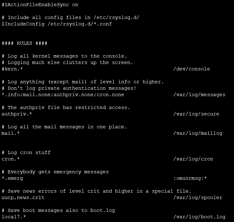 -리눅스 시스템에서 생성될 각종 유형의 로그에 대한 설정을 rsyslog.cnf에서 가능