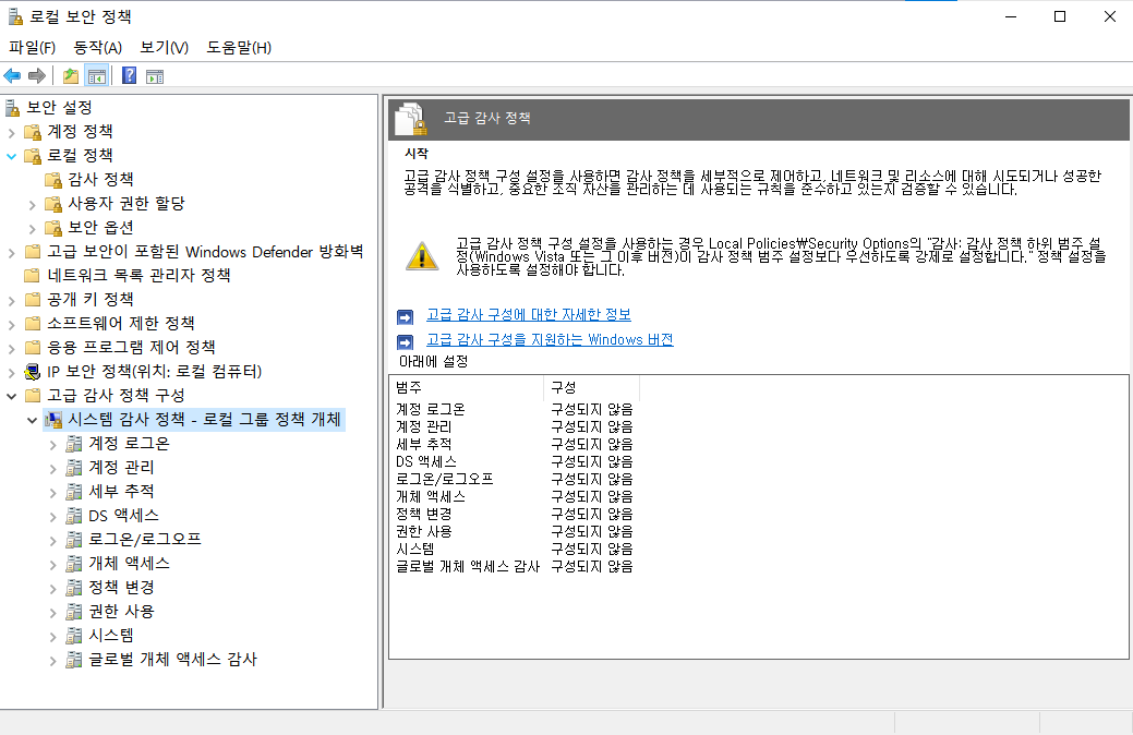 2. [보안 설정 > 고급 감사 정책 구성 > 시스템 감사 정책]
