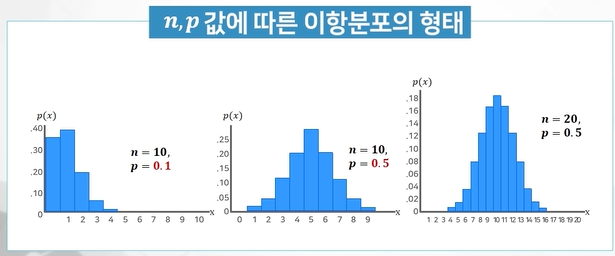 -이러한 이항실험의 성공 횟수 확률분포를 이항분포라 함