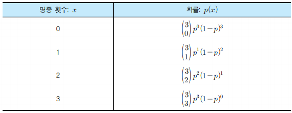 -한번 쏘아서 과녁을 맞힐 확률 p