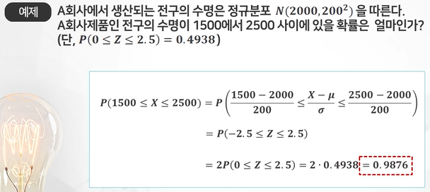 -연속형 확률변수의 분포를 정규분포라 가장하면, 확률변수가 취할 수 있는 값의 모든 범위에서 확률 계산 가능