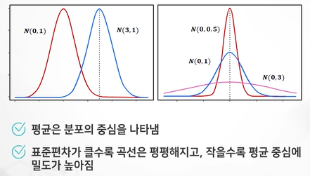 -평균이 0이고 분산이 1인 정규분포를 표준정규분포라 함
