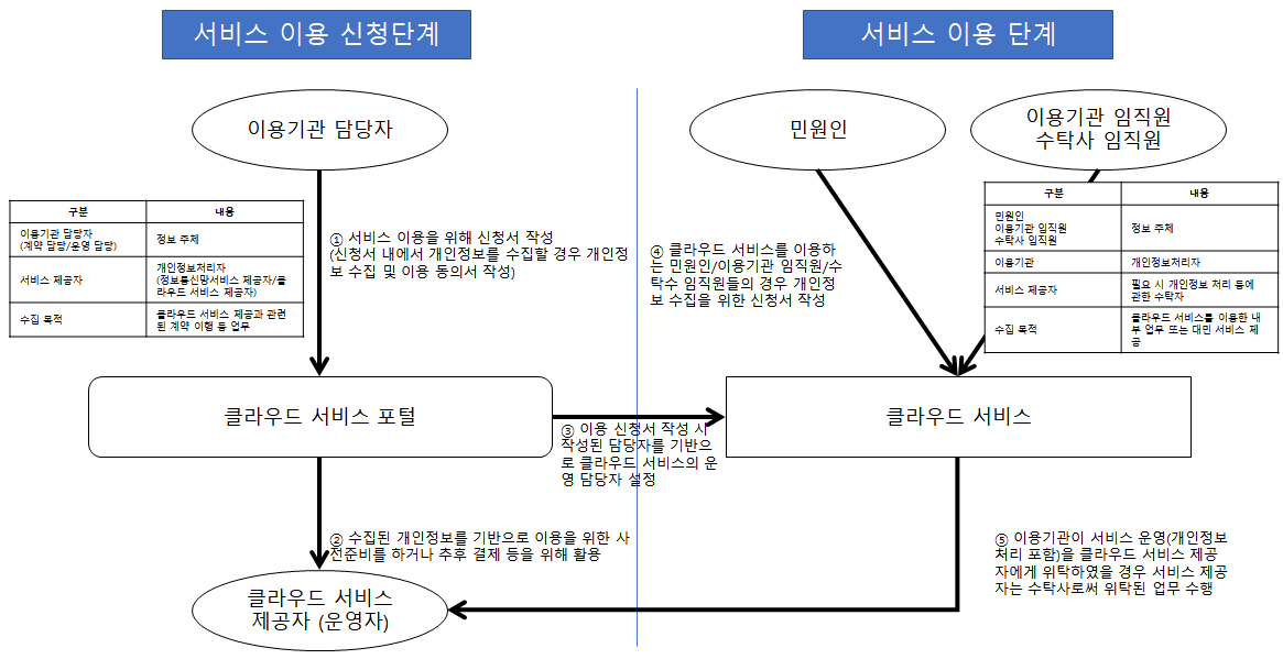 - 클라우드 서비스를 이용하여 내부 업무 또는 대민 서비스 등을 제공하기 위한 목적으로 수집