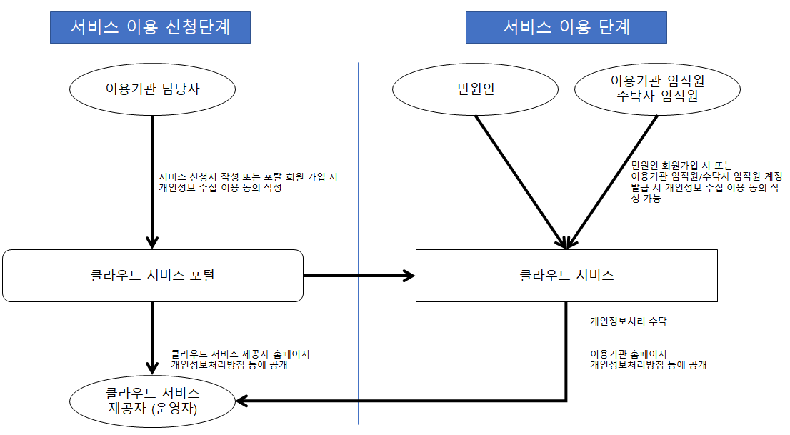 | 클라우드 서비스 제공자 | 수탁사 (필요 시 개인정보 처리 등에 관한 업무 수탁) 이 경우 이용기관은 위탁사가 됨 |