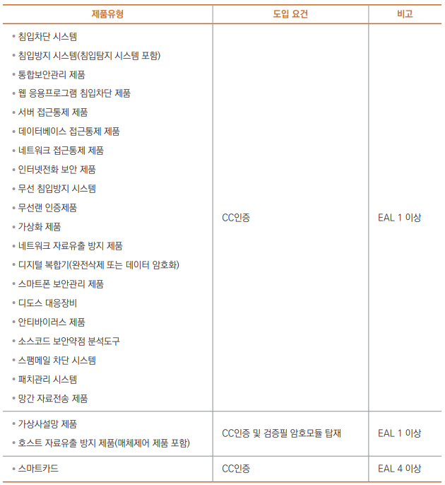 - 정보보호시스템 등 23종은 인증서 보유 필수