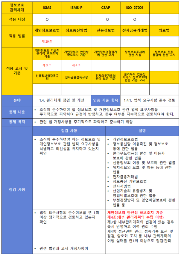 (항목) 1.4.1. 법적 요구사항 준수 검토