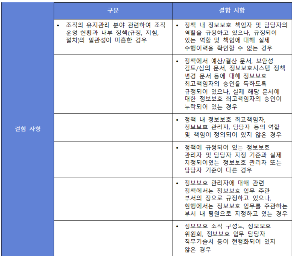 (내용) 조직의 각 구성원에게 정보보호와 개인정보보호 관련 역할 및 책임을 할당하고, 그 활동을 평가할 수 있는 체계와 조직 및 조직의 구성원 간 상호 의사소통할 수 있는 체계를 수립하여 운영하여야 한다.