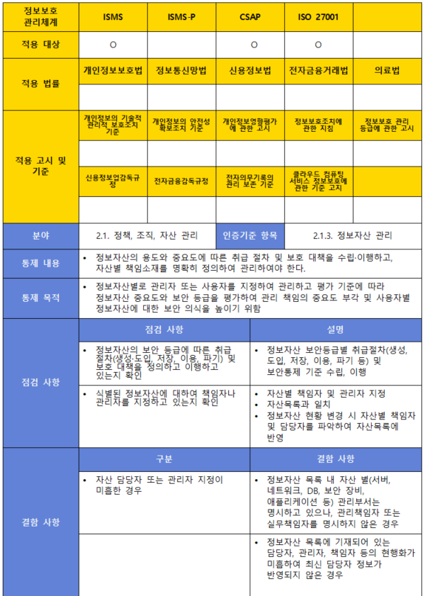 (항목) 2.1.3. 정보자산 관리
