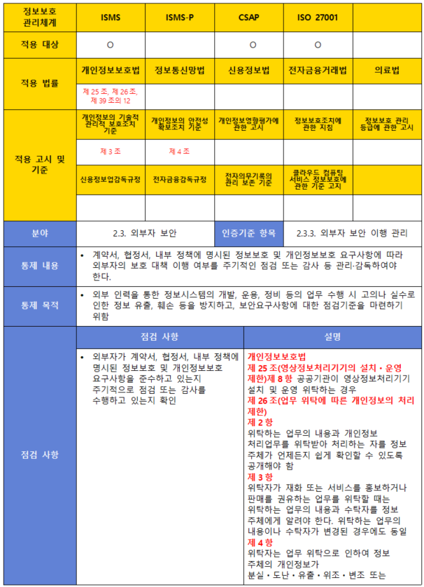 (항목) 2.3.3. 외부자 보안 이행 관리
