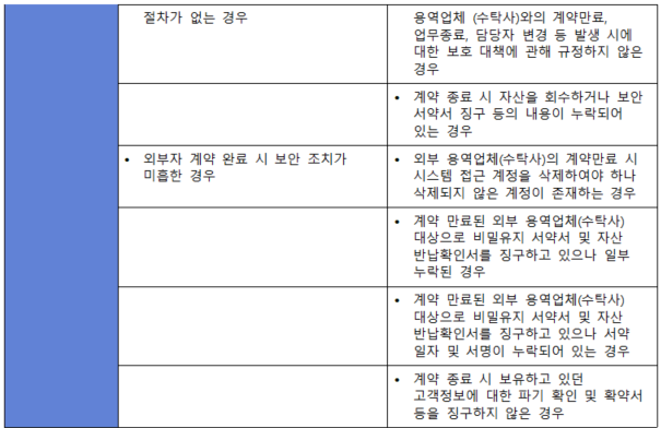 (항목) 2.3.4. 외부자 계약 변경 및 만료 시 보안