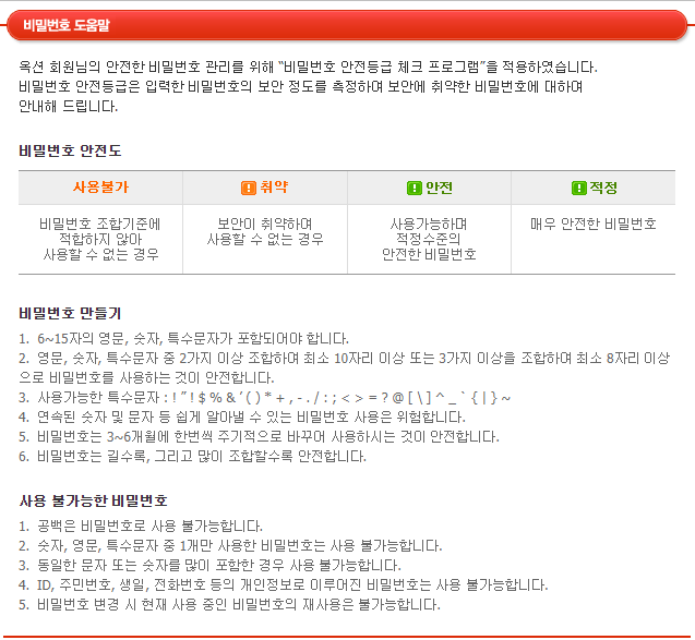 | 점검항목 | 2) 이용자 계정 및 패스워드 관리절차 관련 내용을 홈페이지 또는 메일 등을 통하여 이용자가 쉽게 확인하고 이해할 수 있도록 공지하고 있는가? |