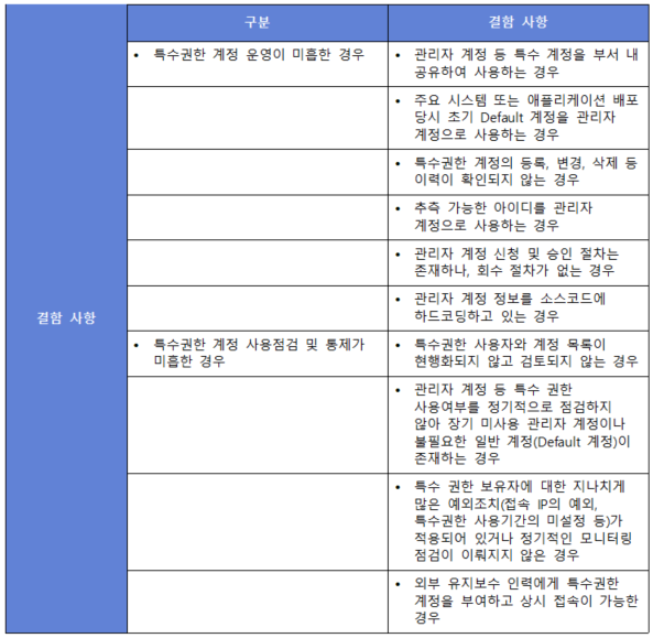 (항목) 2.5.5. 특수 계정 및 권한 관리