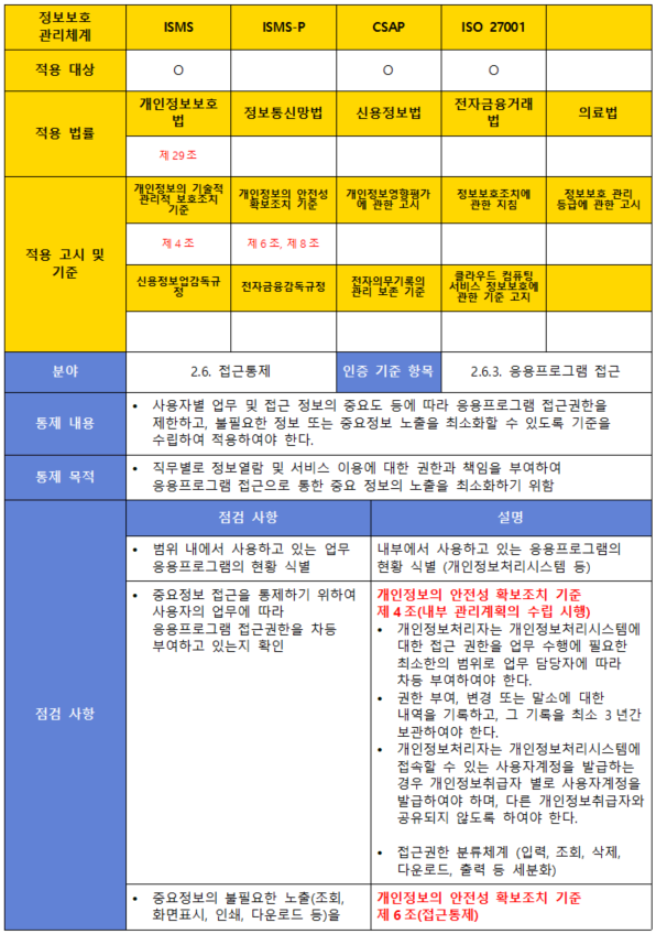 (내용) 사용자별 업무 및 접근 정보의 중요도 등에 따라 응용프로그램 접근권한을 제한하고, 불필요한 정보 또는 중요정보 노출을 최소화할 수 있도록 기준을 수립하여 적용하여야 한다.