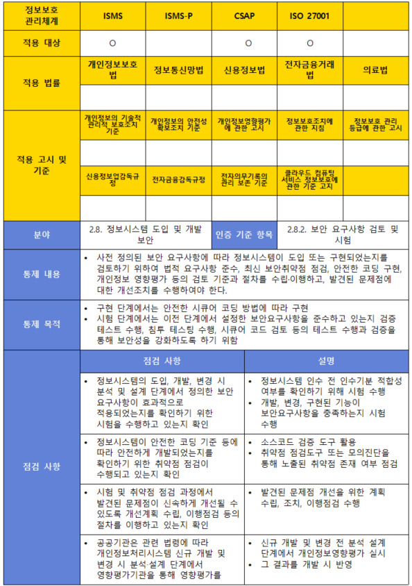 (항목) 2.8.2. 보안 요구사항 검토 및 시험