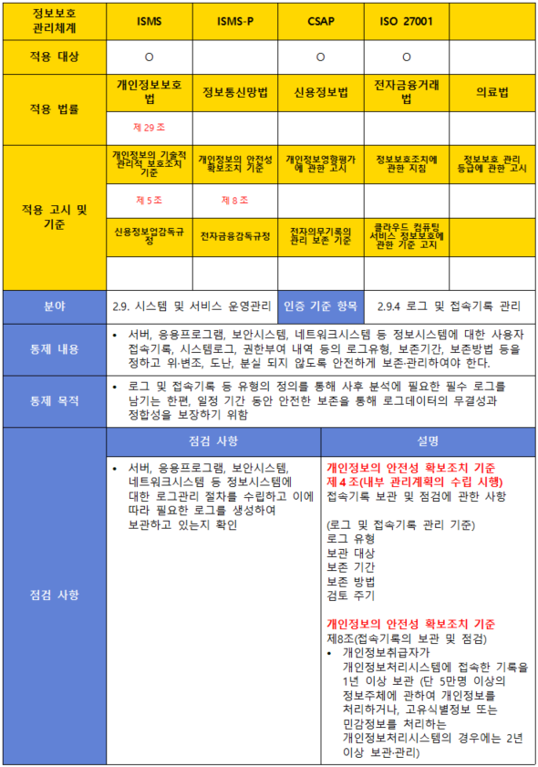 (항목) 2.9.4 로그 및 접속기록 관리