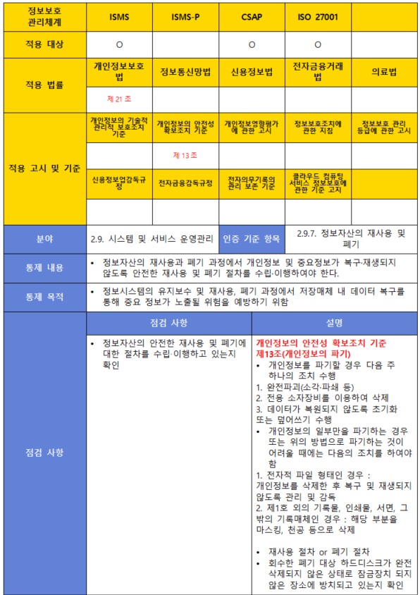 (항목) 2.9.7. 정보자산의 재사용 및 폐기