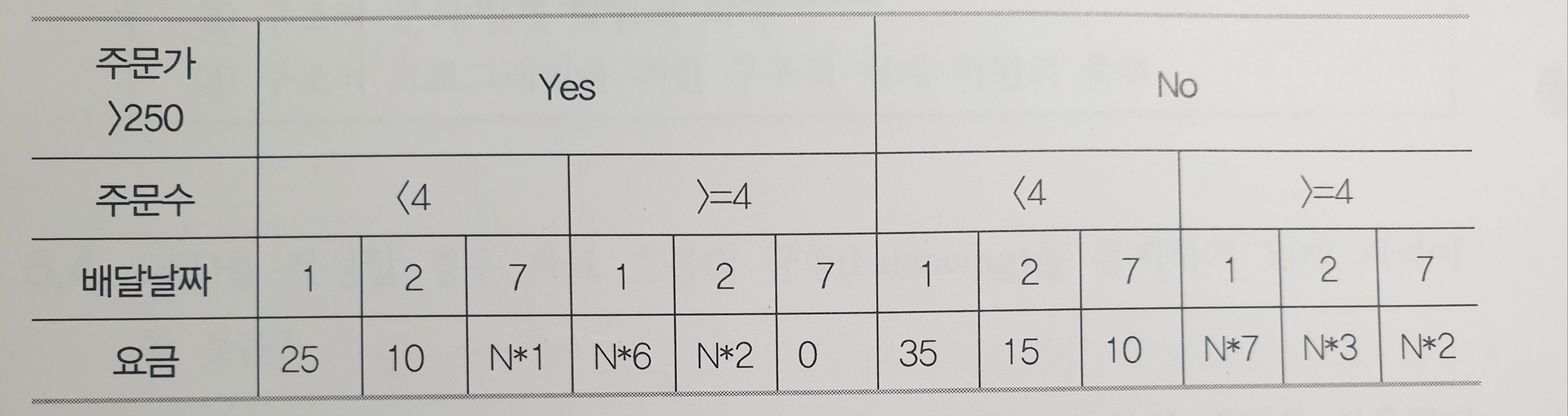 여러 조건과 조건에 맞는 행위를 좌에서 우로 트리 형태로 명세하는 것