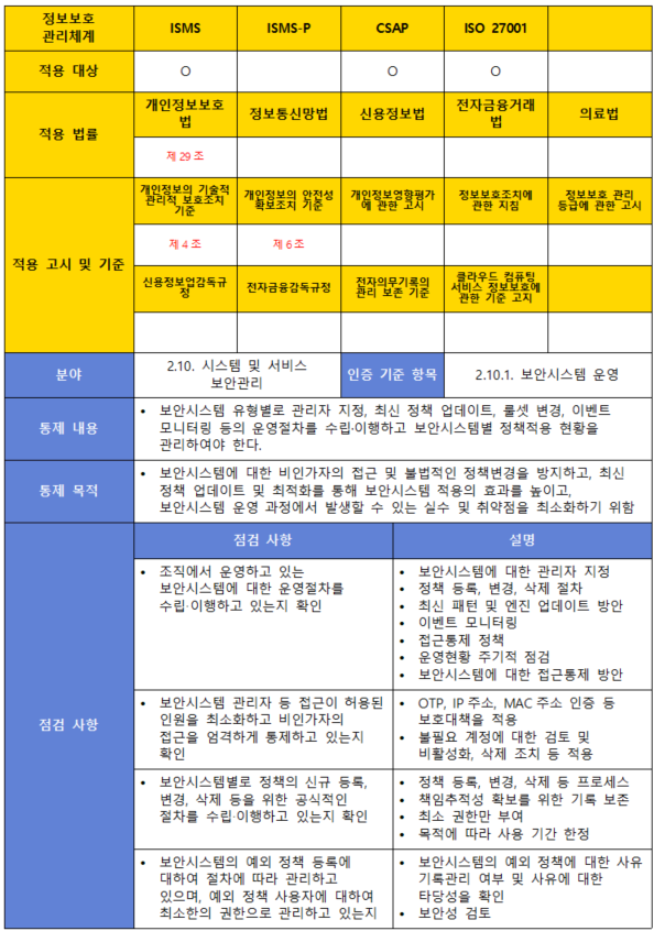 (항목) 2.10.1. 보안시스템 운영