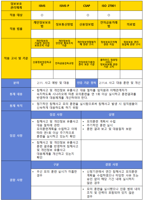 (항목) 2.11.4. 사고 대응 훈련 및 개선