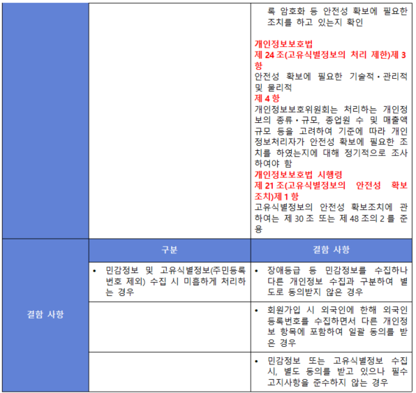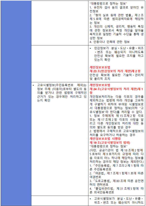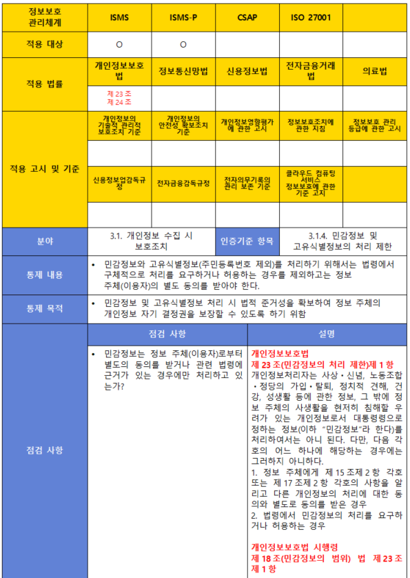 (항목) 3.1.4. 민감정보 및 고유식별정보의 처리 제한