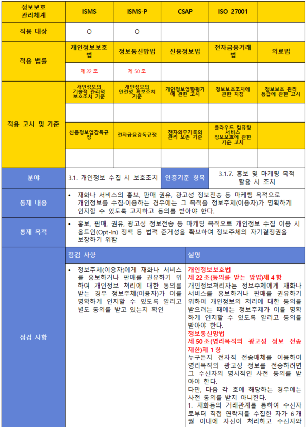 (항목) 3.1.7. 홍보 및 마케팅 목적 활용 시 조치