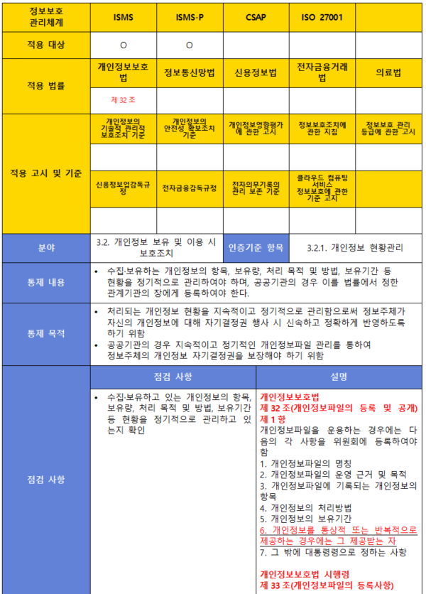 (항목) 3.2.1. 개인정보 현황관리