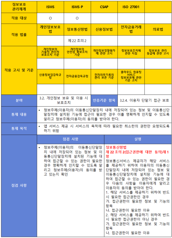 (항목) 3.2.4. 이용자 단말기 접근 보호