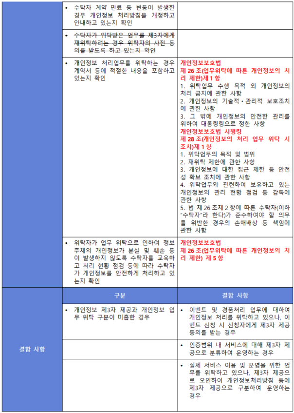 (내용) 개인정보 처리업무를 제3자에게 위탁하는 경우 위탁하는 업무의 내용과 수탁자 등 관련사항을 정보주체(이용자)에게 알려야 하며, 필요한 경우 동의를 받아야 한다.