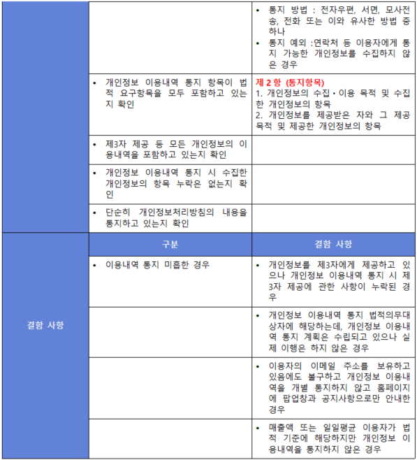 (내용) 개인정보의 이용내역 등 정보주체(이용자)에게 통지하여야 할 사항을 파악하여 그 내용을 주기적으로 통지하여야 한다.