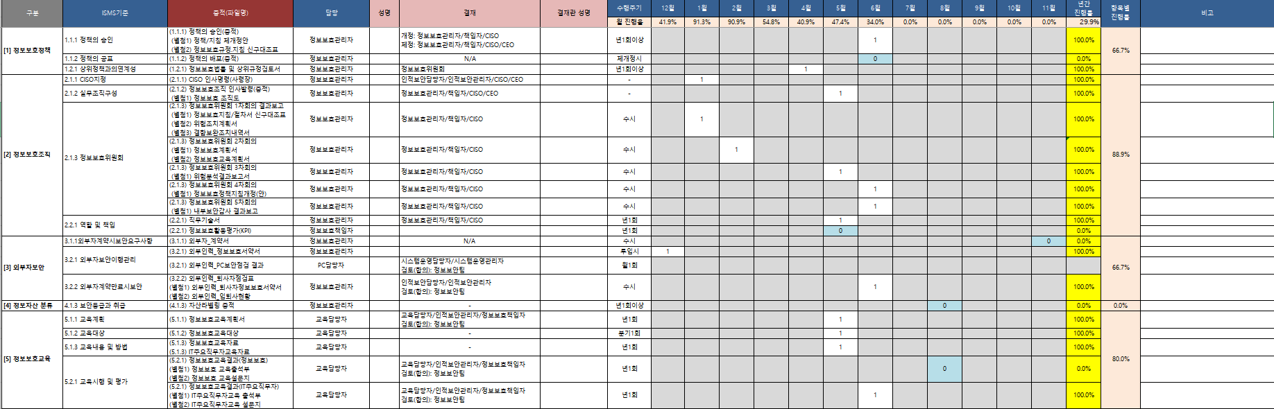 | 정보보호 활동 수행 | -정보보호 활동 주기적 또는 상시적 수행 -정보보호관리체계 운영현황 주기적 업데이트 |