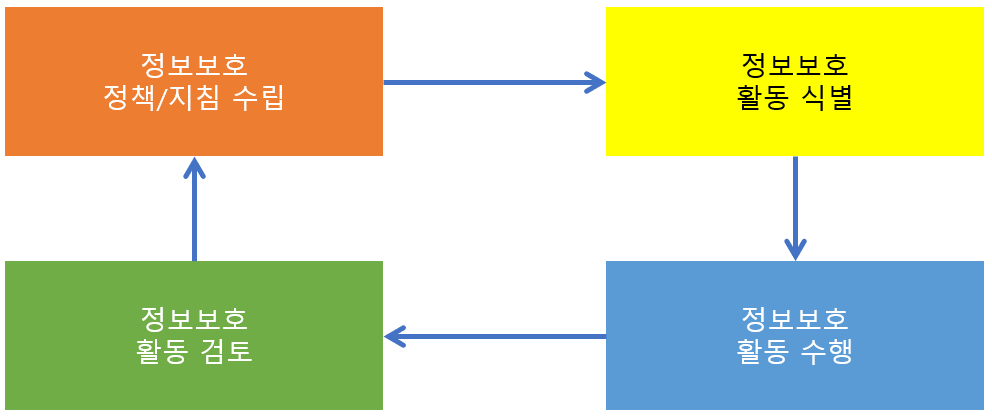 -PDCA에 따라 주기적으로 반복 수행하며 정보보호 활동을 개선