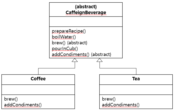 | public class Coffee extends CaffeineBeverage { public void brew( ) { } public void addCondiments( ) { } } |