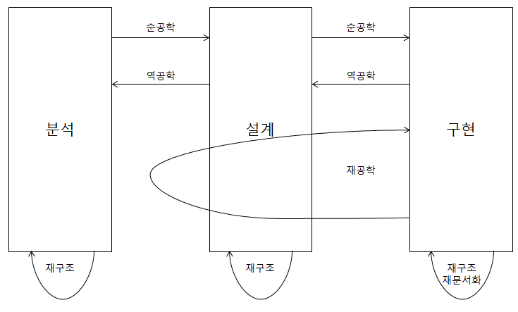 | 재공학(Reengineering) | -기존 시스템의 품질 향상 -기존 시스템의 새로운 버전 생성 -소프트웨어 수명 연장 |