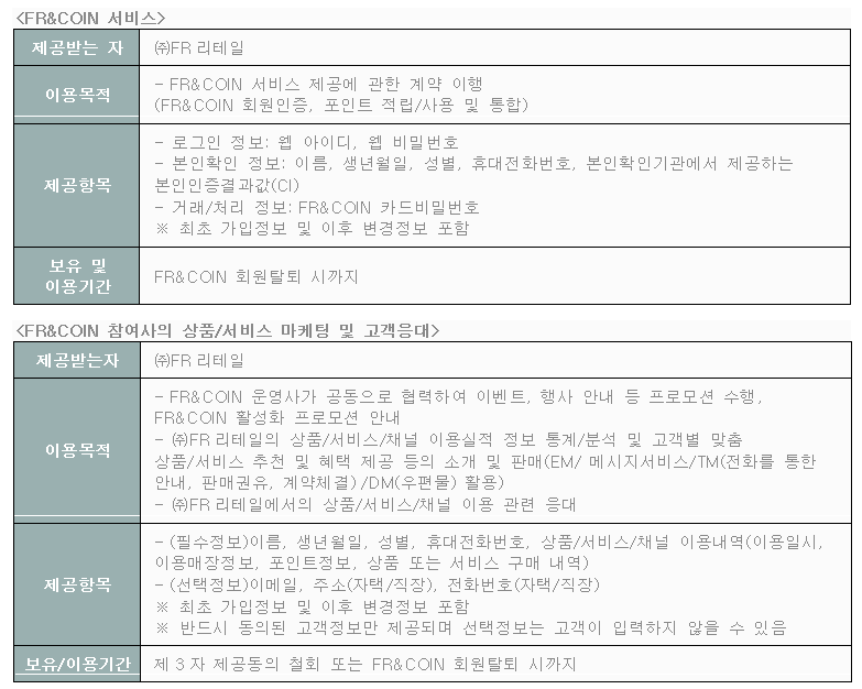 | 이용자 통지 정보 | 1. 개인정보의 수집ㆍ이용 목적 및 수집한 개인정보의 항목 2. 개인정보를 제공받은 자와 그 제공 목적 및 제공한 개인정보의 항목 |