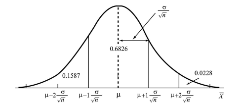 - 100명의 표본평균을 가능한 한 모든 경우를 조사해보면 이들의 분포는 모평균이 μ인 정규분포를 따른다고 알려짐