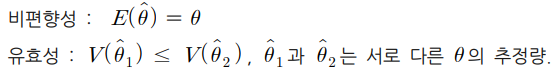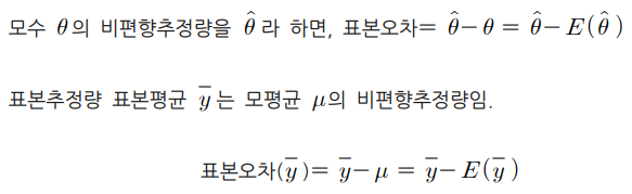 | 표준오차 | -비편향추정량의 표준오차(standard error) -분산의 양의 제곱근인 |