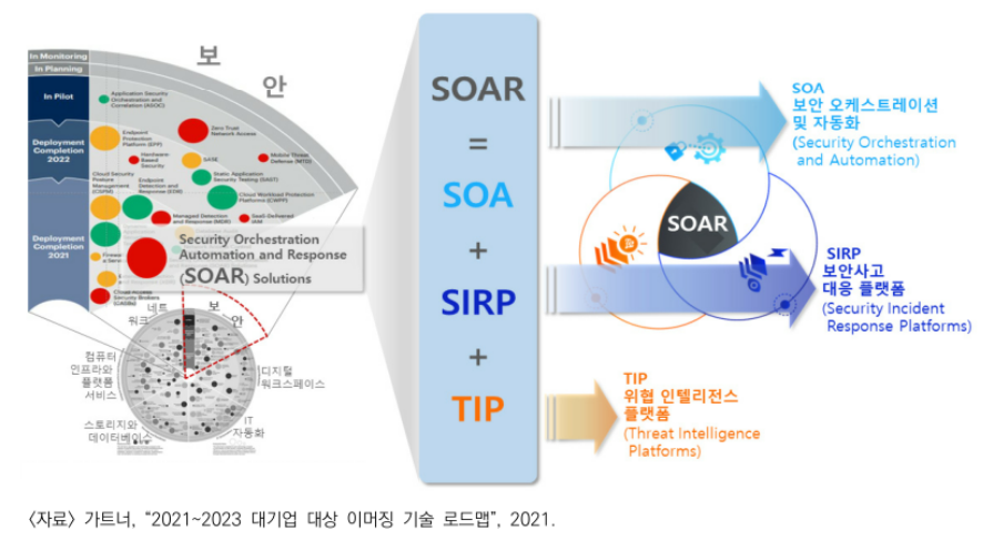 | 보안 오케스트레이션 및 자동화 | 단조롭고 반복적인 업무 파악 해당 업무 소요시간 단축 |