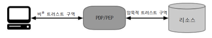 | 암묵적 트러스트 구역 | 신뢰받는 구역 | PEP를 통과한 모든 트래픽은 동일한 트러스트 레벨을 보유 PEP/PDP를 세분화하려면 암묵적 트러스트 구역을 작게 생성 리소스에 더 가깝게 PEP/PDP를 위치 |