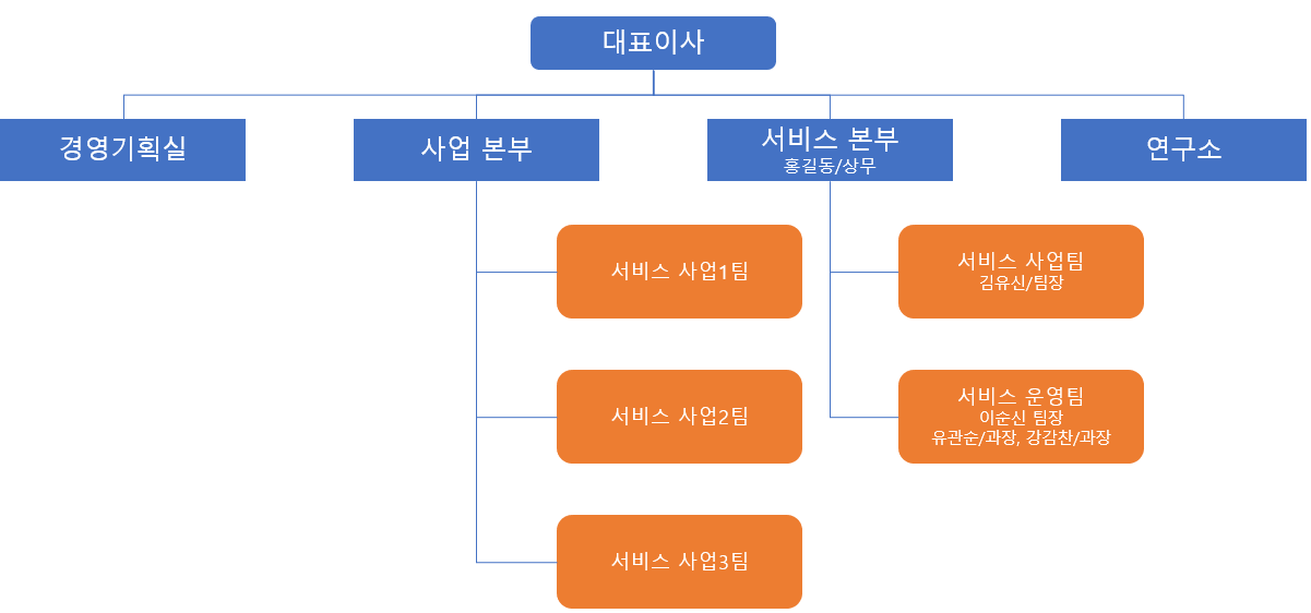 -이순신/팀장은 서비스 운영팀의 팀장으로써 서비스 사업팀장과 동등한 직무레벨
